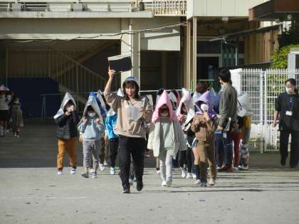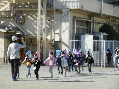 「訓練。訓練、避難訓練。第二小学校の避難訓練です。」