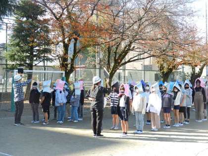 「第二小学校の避難訓練です。」