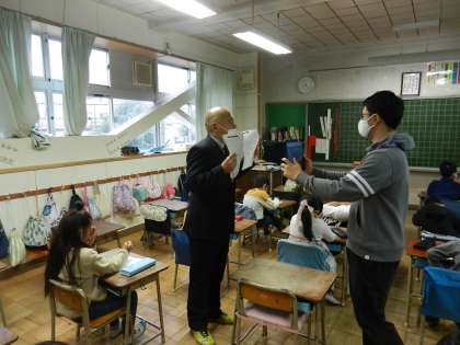 学校長の講話の後、各教室で担任以外の先生がアンケートを実施し回収しました。