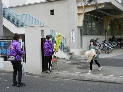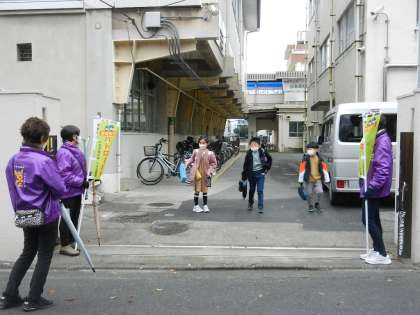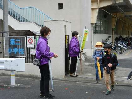 下校する子供たちに声をかけ、安全に帰宅する活動です。