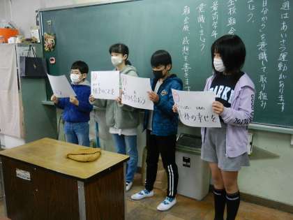 学校長の話に続いて、代表委員からの連絡です。