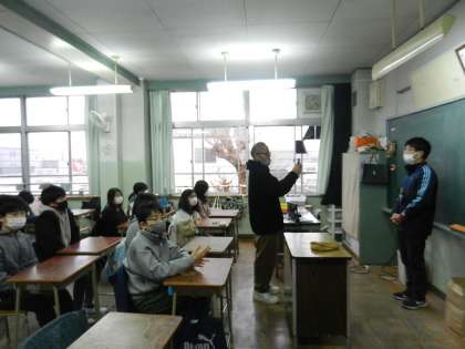 今回は、6年生の教室から「オンライン全校朝会」を行いました。