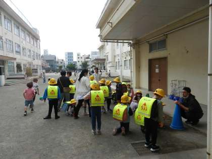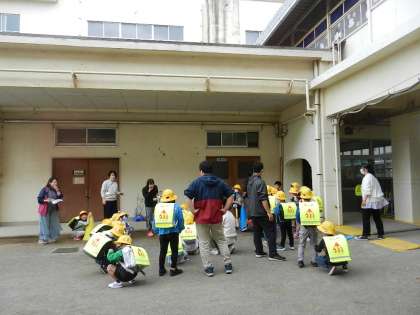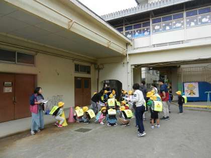 帰る方向が同じ仲間と一緒に下校します。先生方も付き添います。