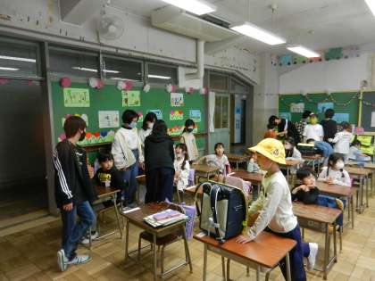第二小学校では毎年、6年生が1年生のサポートをしています。