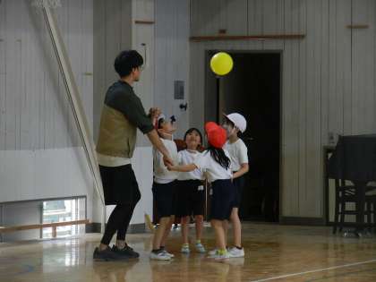 様々な動きで運動を楽しみます。笑顔!