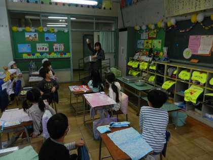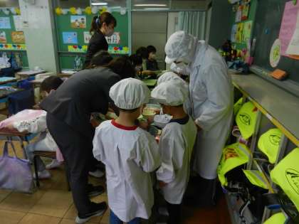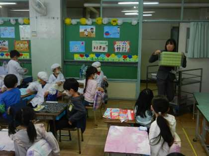 本来の給食指導の時間より少し早めに準備を始めます。