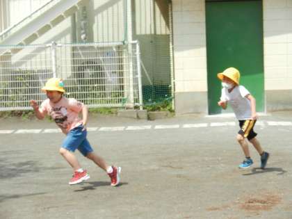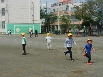 子供たちが一斉に校庭に飛び出します。