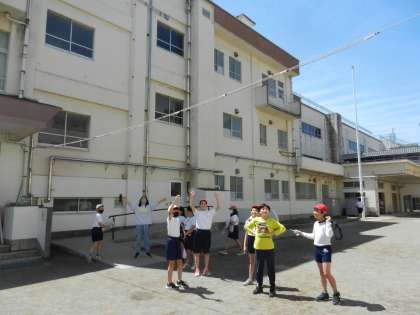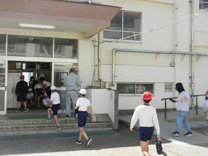 体育の学習が終わった6年生です。