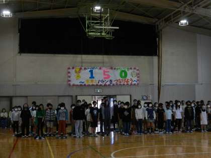 大きな声で校歌を歌います。