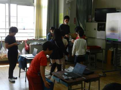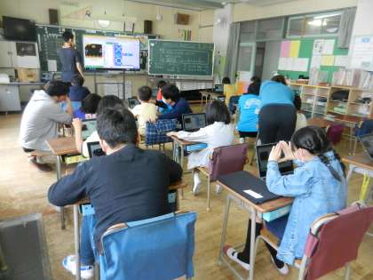 子供たちが作成したプログラムが正しく作動するかどうか確かめます。