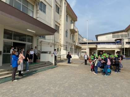 保護者の方々、第二小学校の先生方も見送りに来ています。