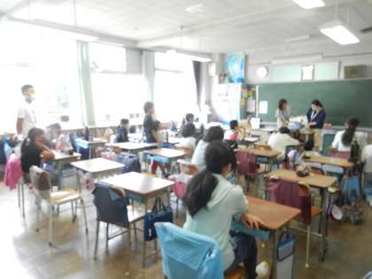 1年生の教室から6年生の教室へ向かいます。