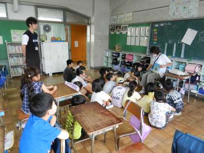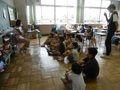 子供たちは図書ボランティアの方の声を聞き、動作を見ながら、絵本の世界に引き込まれていきます。