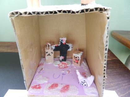 そっと覗いてみます。子供たちのアイデアがたくさん詰まった作品に仕上がっています。
