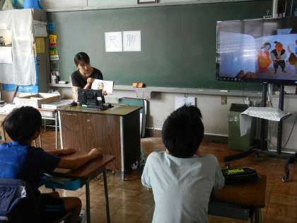 大型液晶モニターを使用して、絵本を大きく映し出します。