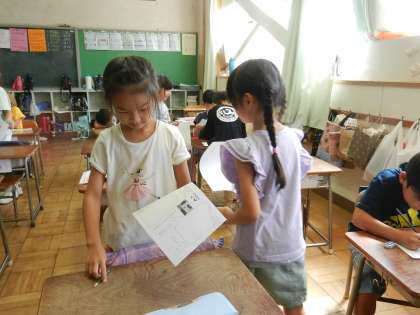 自分の考えや思いをきちんと伝え合います。相手の考えを認めたり、自分のプリントに書き足したりします。これが深い学びです。