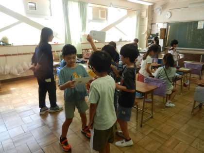 最後は第二小学校の栄養士さんにインタビューした内容を子供たちに伝えます。