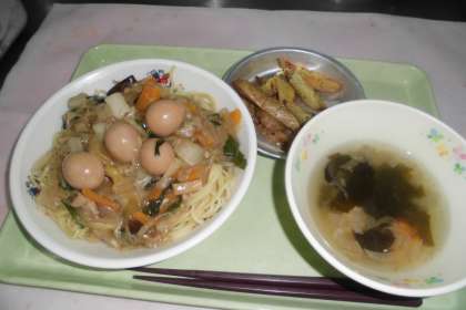 ☆今日の献立 あんかけやきそば 中華スープ ベイクドポテト 牛乳