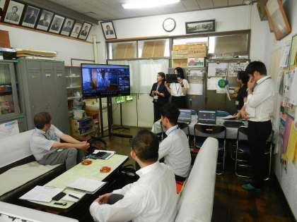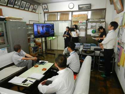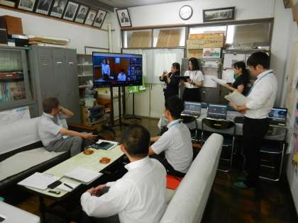 第四中学校の校長室からオンラインで中継します。