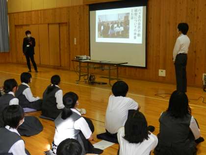 プレゼンテーションソフトを活用し自分たちで作成したスライドを映します。