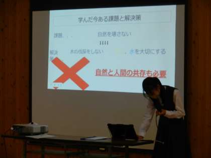 中学生も小学生も、発表を聞きながらメモを取ります。