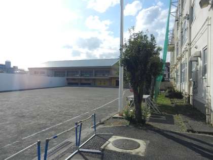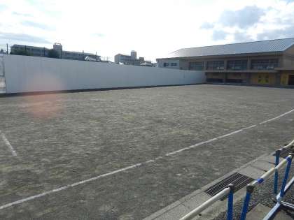 白く高い塀が校庭を二つに仕切ります。
