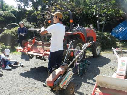 「後ろのスクリューのようなもので畑の土をかき混ぜます。」