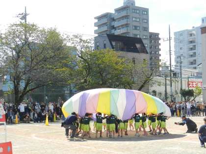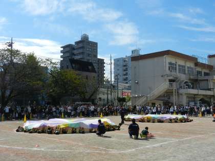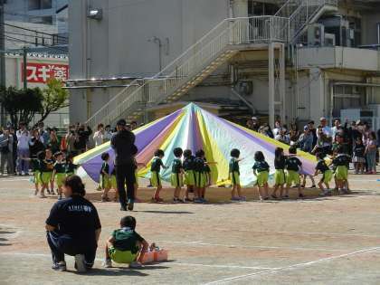 様々に動きます。先生の合図で園児は素早く体制を整えます。