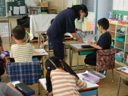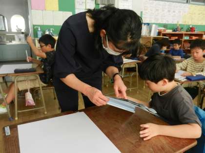 こだま学級の子供たちは自分の思い出に残る場面を描きます。
