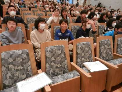 6年生もドキドキ、ワクワクしながら中学3年生の合唱が始まるのを待ちます。