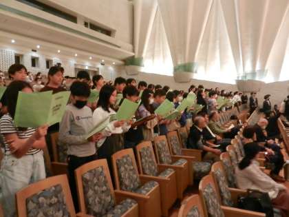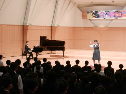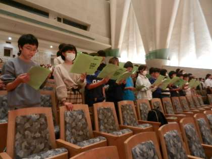 合唱コンクールの締めくくりは、中学生と小学生の合同による全員合唱です。