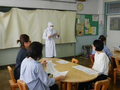 学校長の挨拶に続き、栄養士から学校給食について話をします。
