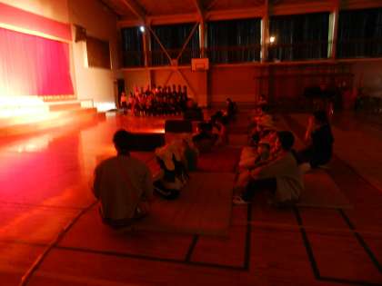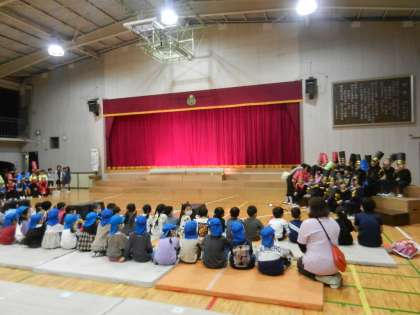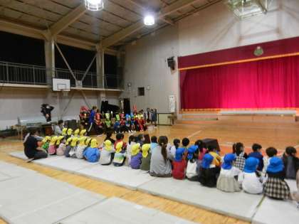 体育館に近隣の保育園児が学芸会のリハーサル風景を見学に来ました。