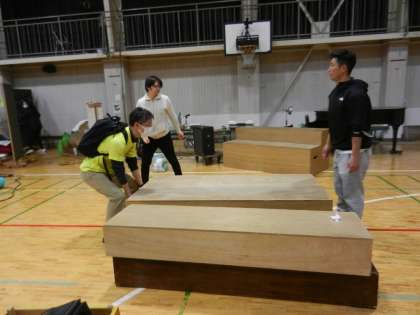 パイプ椅子、ひな壇、照明器具、大道具・小道具…。教職員と一緒に片付けてくださいました。ありがとうございます。