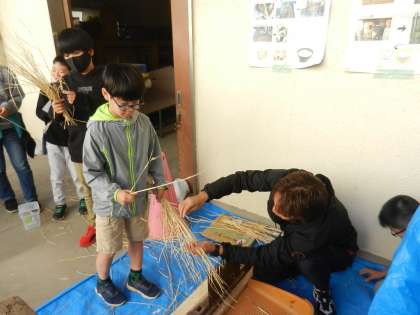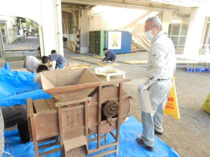 1学期から育てた「二小米」を脱穀します。