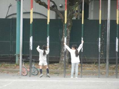 ボールを使う子供たち、一輪車を使う子供たち、校庭の固定施設を使う子供たち、砂場で遊ぶ子供たち…。