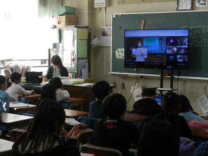 オンライン配信で児童集会に参加します。