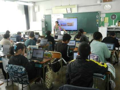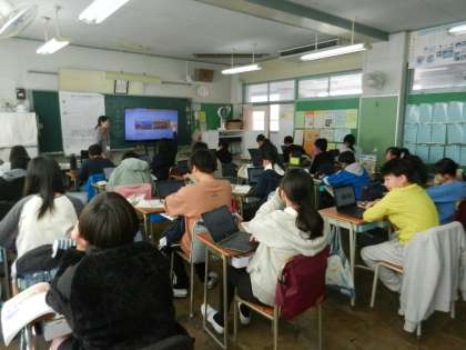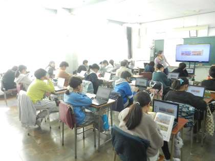 タブレット型学習用端末の使い方、自分の考えを打ち込むスピード、友達との共有等、楽しく学習に取り組んでいます。
