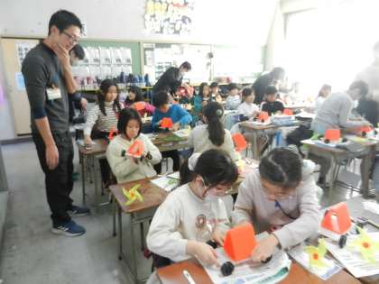 東京高専の学生さんが子供たちに寄り添います。