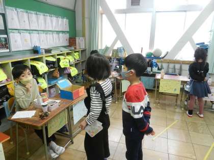生活科の学習中です。「あきのおもちゃもつり」です。