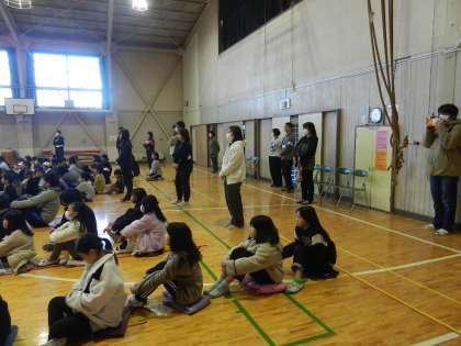 体育館の後ろには保護者の方の姿も見えます。