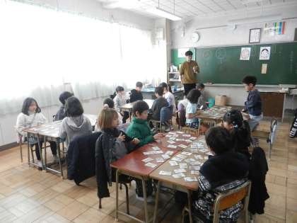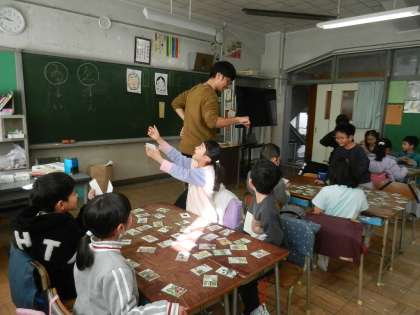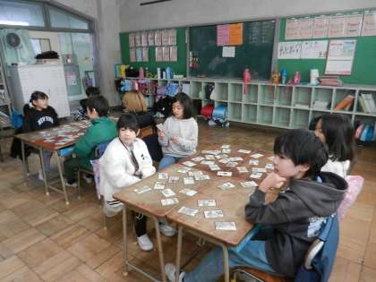 生活科の学習中です。カルタ遊びをしています。