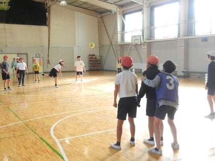 6年2組の子供たちが授業の最後に「ドッジボール」で汗を流しています。