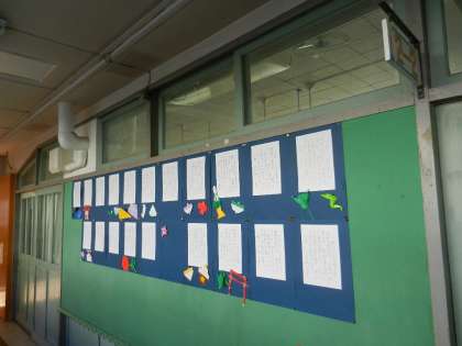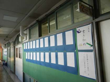学校で清書した書き初めを掲示しています。