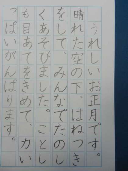 12月から書き初めの練習を始め、冬休みの間も自宅で練習しました。