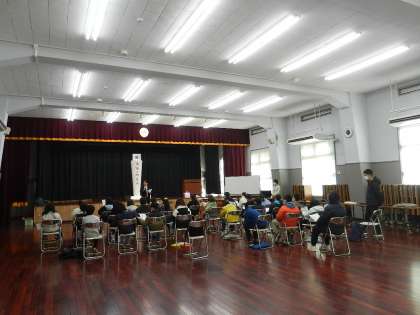 こだま学級と4年生の校外学習です。第二小学校では毎年、織物組合へ行き、職員の方々から興味深い話を聞いたり、織物体験をさせていただいたりしています。