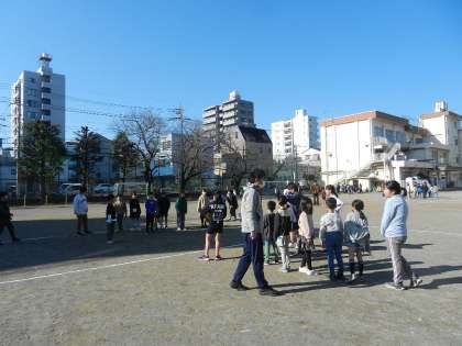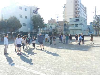 今回は、友だち班遊び集会です。異学年交流です。