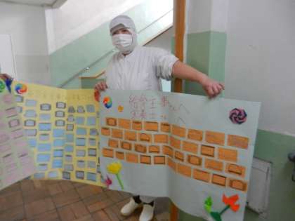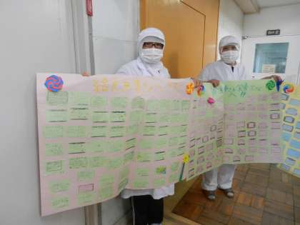 毎日、安全、安心、おいしい給食を作ってくださっている給食調理員さんへ感謝の気持ちを込めてメッセージを書きました。