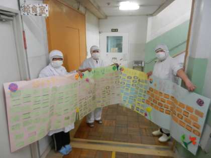 子供たちからのメッセージを受け取り、給食調理員さんもすごく嬉しそうでした。