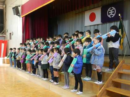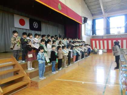 第二小学校では毎年、入学式で歓迎の演奏をします。